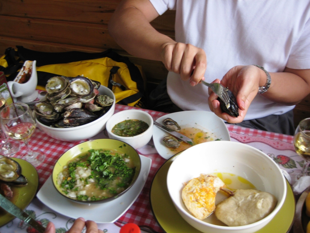 プエルト・モン風のウニ、カキの食べ方もなかなかでした。