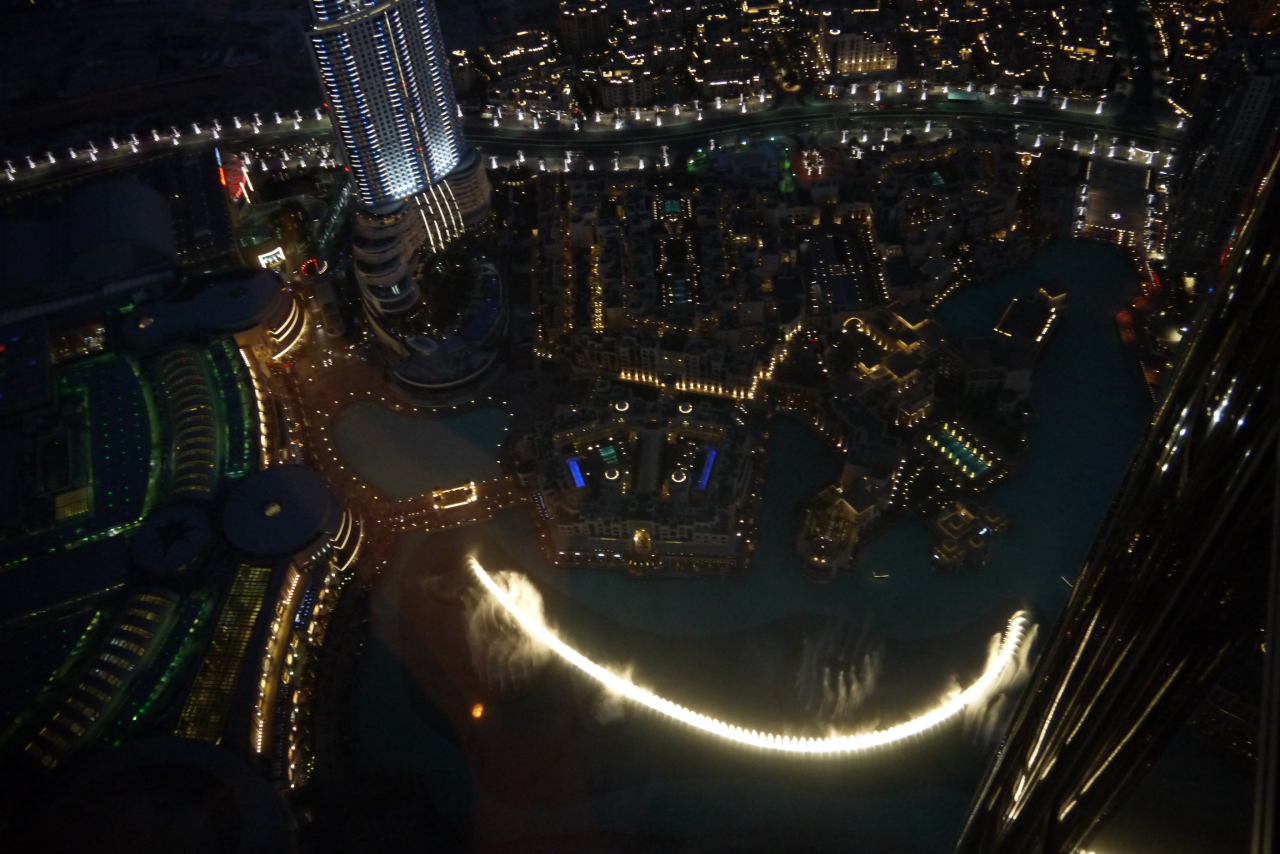 世界一高いビルからの景色は圧巻で、ドバイ・ファウンテンの噴水ショーを上から見られるのも面白かったです。