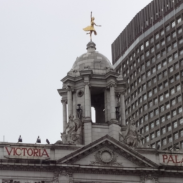 建物はシックで美しく、ドーム型の丸い塔の外壁には彫刻が刻まれ、塔の上には、金色のバレリーナーが踊っています。