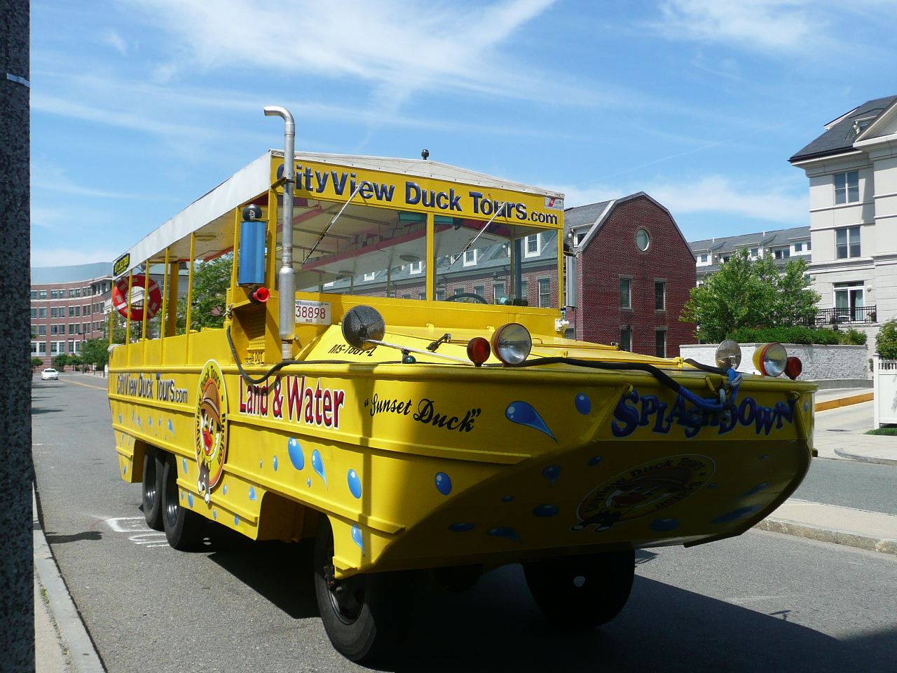 ボストン到着日に街のあちこちで見かけた奇妙な形をした車…。友人に聞いたら「是非とも乗れっ!」って言われて2日目に参加してみましたダックツアー。街の主要観光地を走って案内してくれ、何と船として水の中にも入っちゃいます。とにかく変わってて楽しかったです。