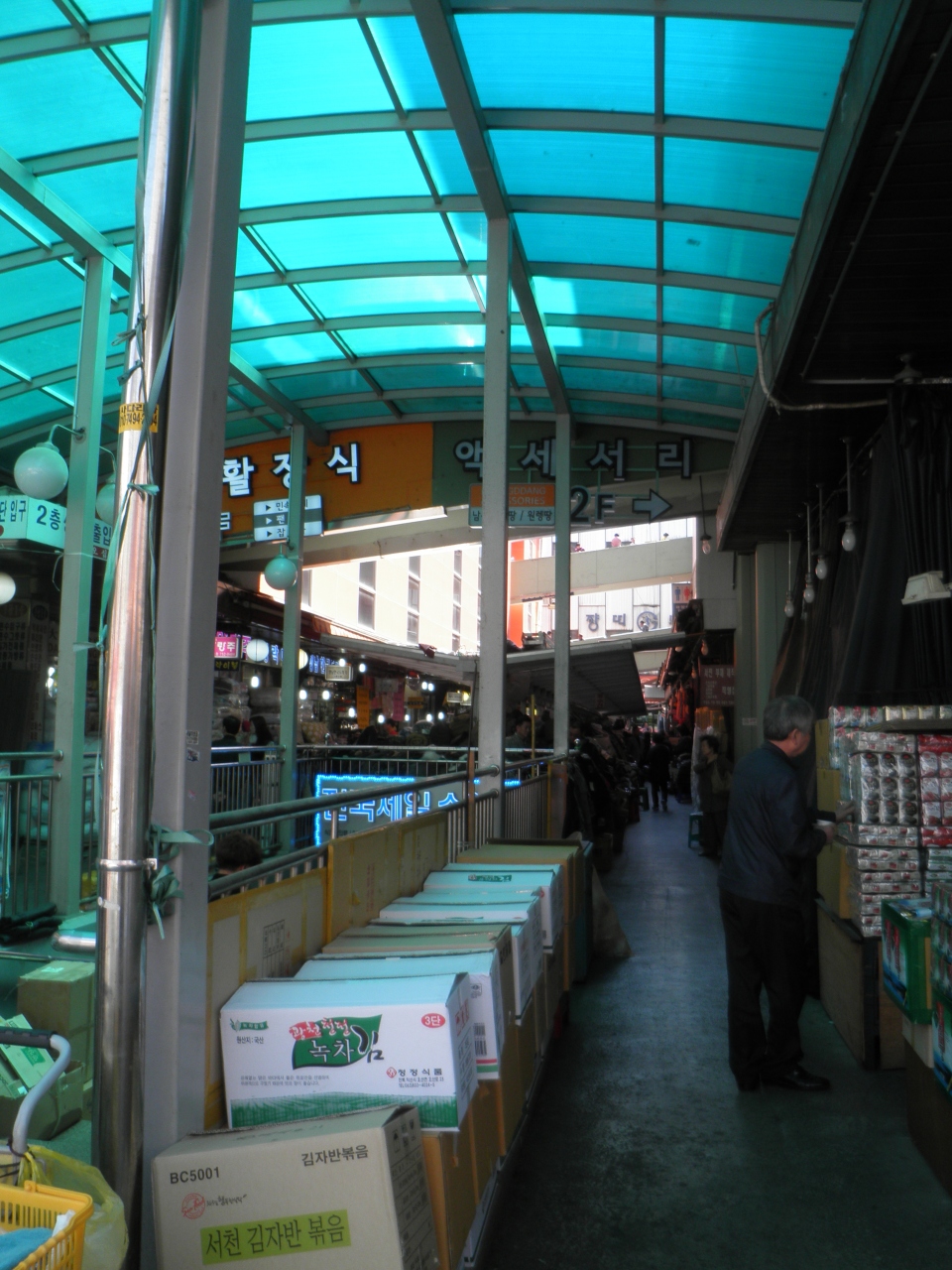 南大門市場は韓国ソウルにある定番観光スポットです。 ここは日本語の看板が多いし、日本語をしゃべれる店員さんも多いようです。 特にスーパーより安いわけではないようなので、ぶらぶらして雰囲気を楽しみました。 スィーツの屋台には、長い待ち客の列ができていました。