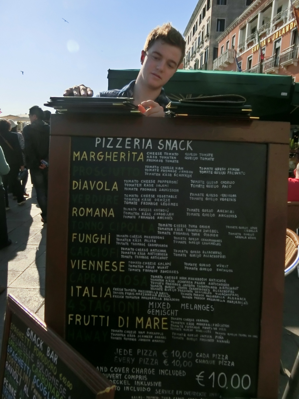 広場を通る観光客や海を走る船などを見ながら味わいました。