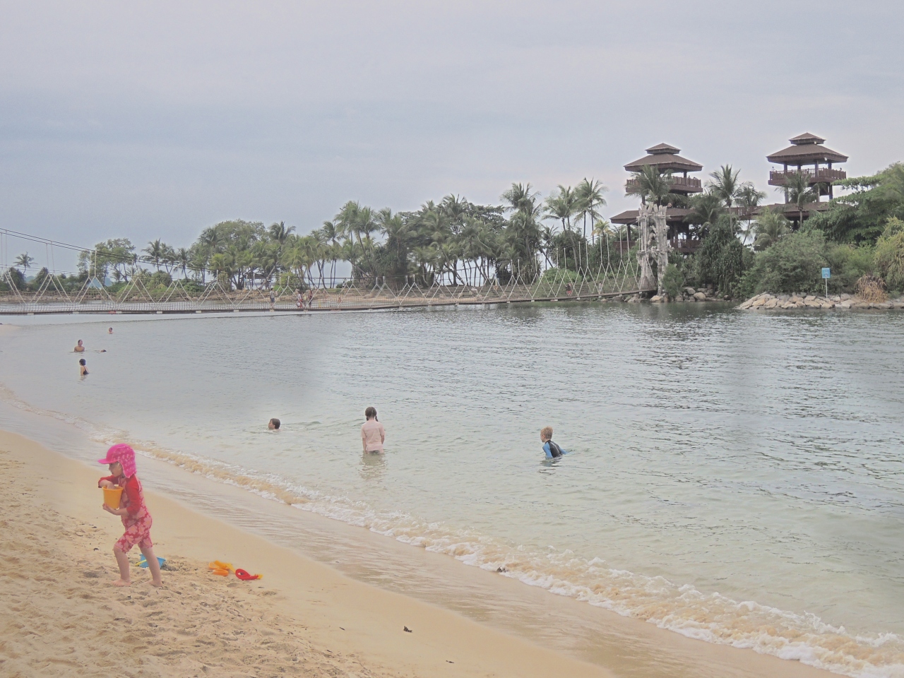 今回泊まったホテルのカペラシンガポールからは歩いて数分。今回は泳がずに海辺を散歩しました。白い砂浜とまずまずの綺麗な水のビーチで、人はまばら。波がとても静かなので安心して泳げそうな感じでした。海の向こうに見えるのは船舶の群れ。このあたりがシンガポールらしいなと思いました。