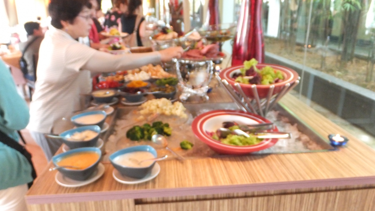 新鮮なサラダ、ピクルス類、ハム類から始まって、洋食・マレー料理・中華風・シンガポール風と種類も豊富。