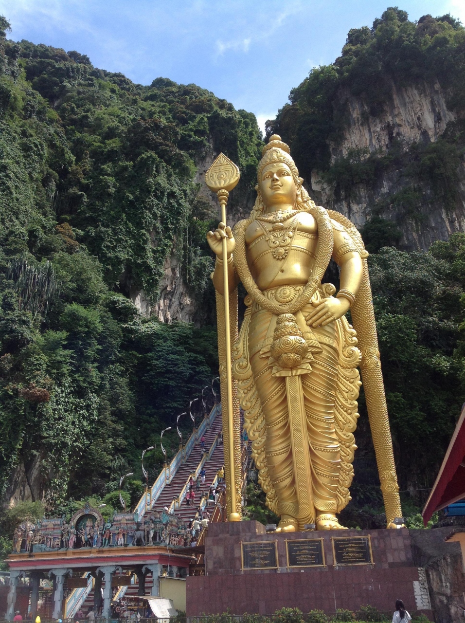 寺院の中はドームになってて、ライトアップがされてます。ヒンドゥの物語を少し知ってると、内部の装飾や像の意味がわかって面白いです。