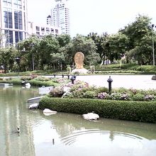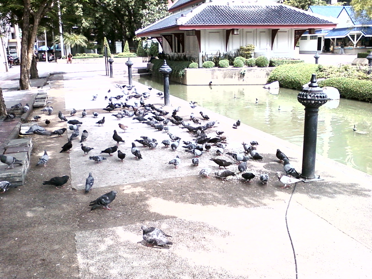 約一年ぶりに訪れたこのペンチャシリ公園は、スクンビット通りのプロンポン駅そばにある緑豊かな公園です。中央に大きな池があり人々の憩いの場となっています。また公園内は、常にセキュウリティーが巡回していますので安心です。餌付けをしているようで、通りに面した噴水付近には多くの鳩が群がっていました。