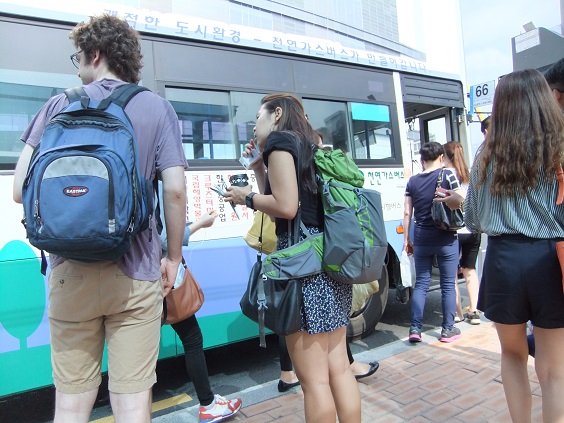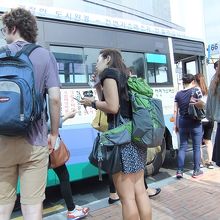 バスで太宗台に行ってきました。釜山に限ったことではないようですが、バスの車内アナウンスは「次の停留所」と「その次の停留所」の順に、2箇所の停留所を知らせてくれます。韓国の発音で停留所の名前(太宗台=テジョンデ。みたいな・・・)が分かれば、土地勘の無い場所でも降りる準備が出来ると思います。もっとも、太宗台は終点でしたが。
