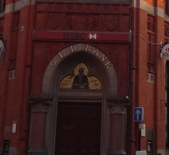 銀行正面にはシェイクスピアの肖像が飾ってあります。
