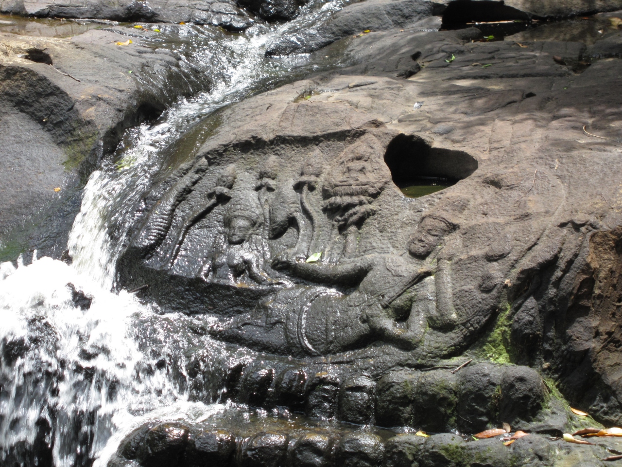 小さな滝があり、1000体のリンガを流れてきた滝なので、神聖な滝だ、とガイドは言っていました。