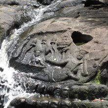 水中に掘られたたくさんのリンガや、神々が出迎えてくれます。自然に厳かな気分になります。