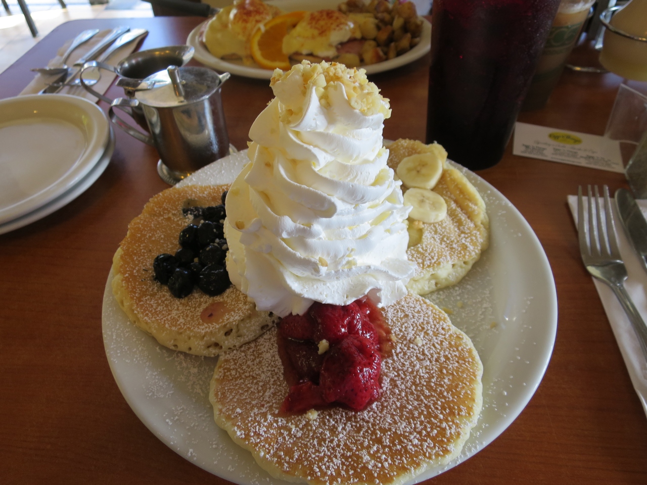 午後の休憩後だったので待たずに入れましたが、日本人ばかり、、、パンケーキとエッグベネディクトをいただきました。美味しくはありましたが、飲物と合わせて1人約2,000円は、結構なお値段だと思います。アルコールも有りませんし、少し贅沢な朝食用のスポットかと思います。