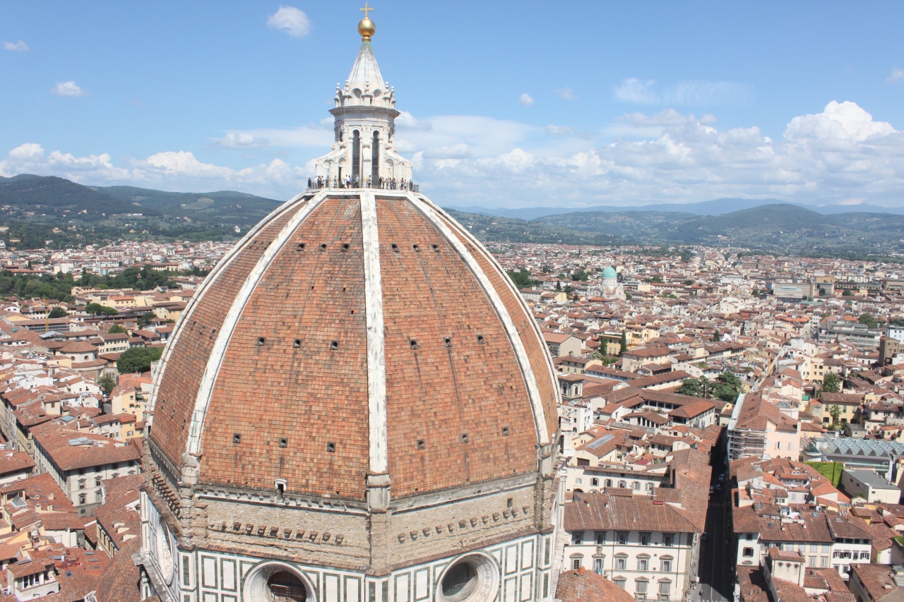 歩いて上っていきます。鐘のレプリカが置いてある場所が一番上かと思っていましたが、さらに上に行くことができました。一番上からの景色はよかったです。ドゥオモが思っていたよりも近くて、とても大きく見えました。