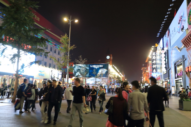 地下鉄の王府井駅から北上して5分くらい行った左側に、屋台が集まったエリアがあります。でもどことなく観光客向けな感じ。