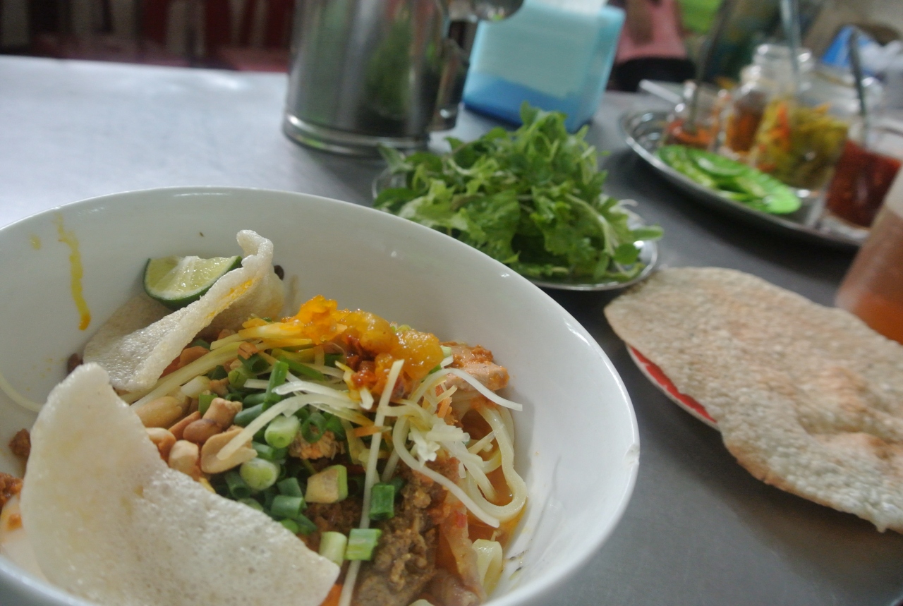 ダナンの街を離れる前に、朝食でミークアンを訪ねました。メニューは、写真のように、3種類、そして、お米のせんべい?を付けて食べると尚一層、美味しかったですよ。値段も200円程度で、いい朝御飯になりました。ダナンへ行く時があれば、また、是非食べたい一品です。