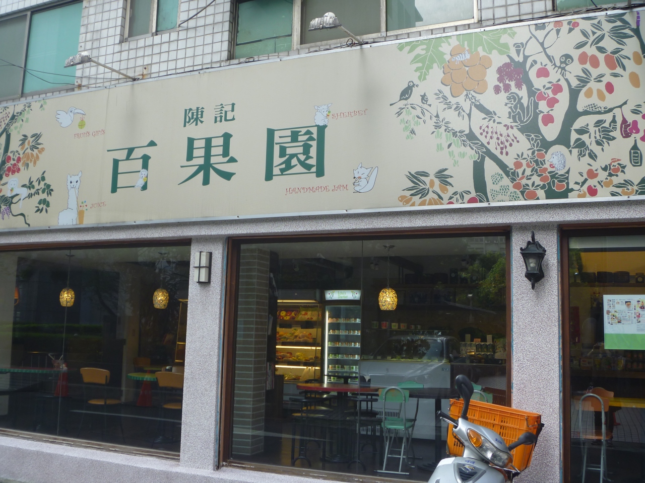 果物が冷蔵庫に並んでます。テーブルがあるので、店内で食べられます。