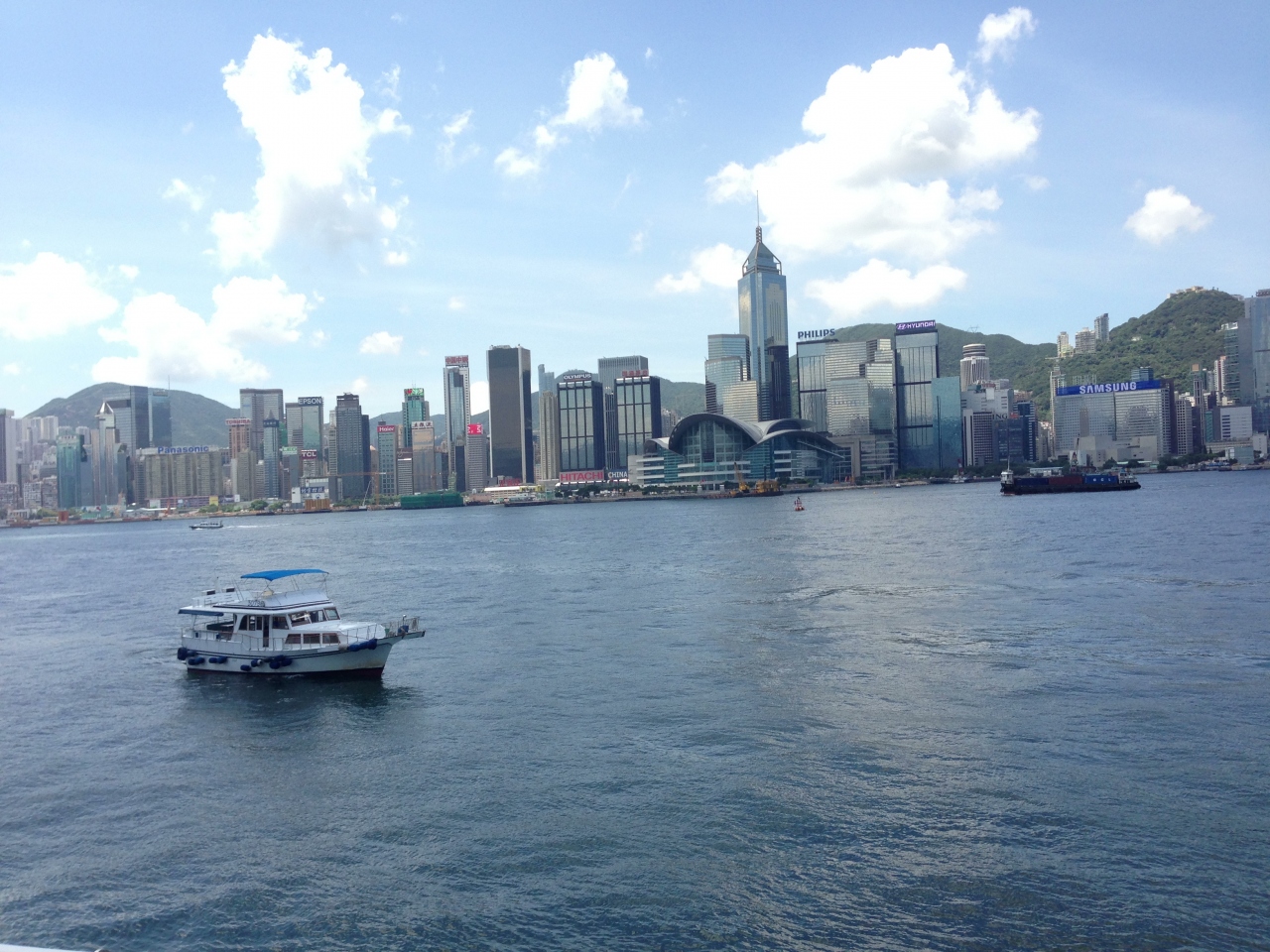 香港の高層ビルを眺められ、観光気分の盛り上がる移動手段でした。
