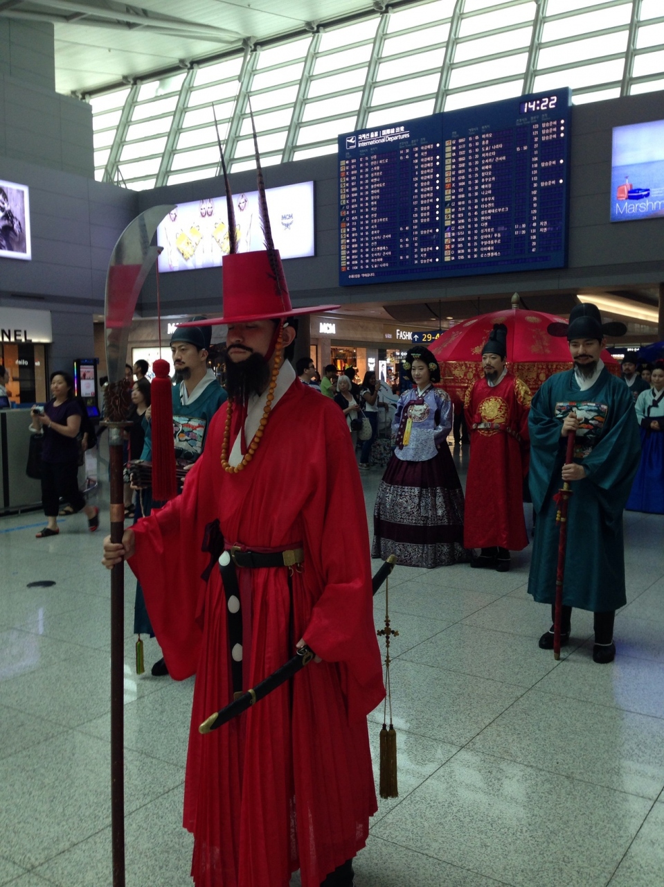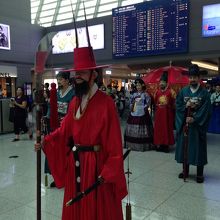 韓国のハブ空港です。とにかく広い。そして サービス精神が旺盛です。空港内を朝鮮時代の民族衣装を着た方達が練り歩き いい見学が出来ます。無料のの伝統文化体験もあり 日本も見習ってほしいです。フードコートは いろんな種類の食べ物があり 楽しめます。