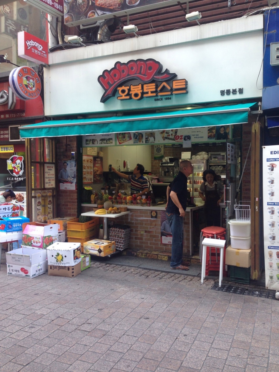 店の前に サンプルのようなものが置いてあるので 指差しで わかってもらえました。 ジュースはとてもフレッシュで美味しいです。お値段もお安いです。飲みながら 明洞の街をぶらぶらしました。