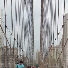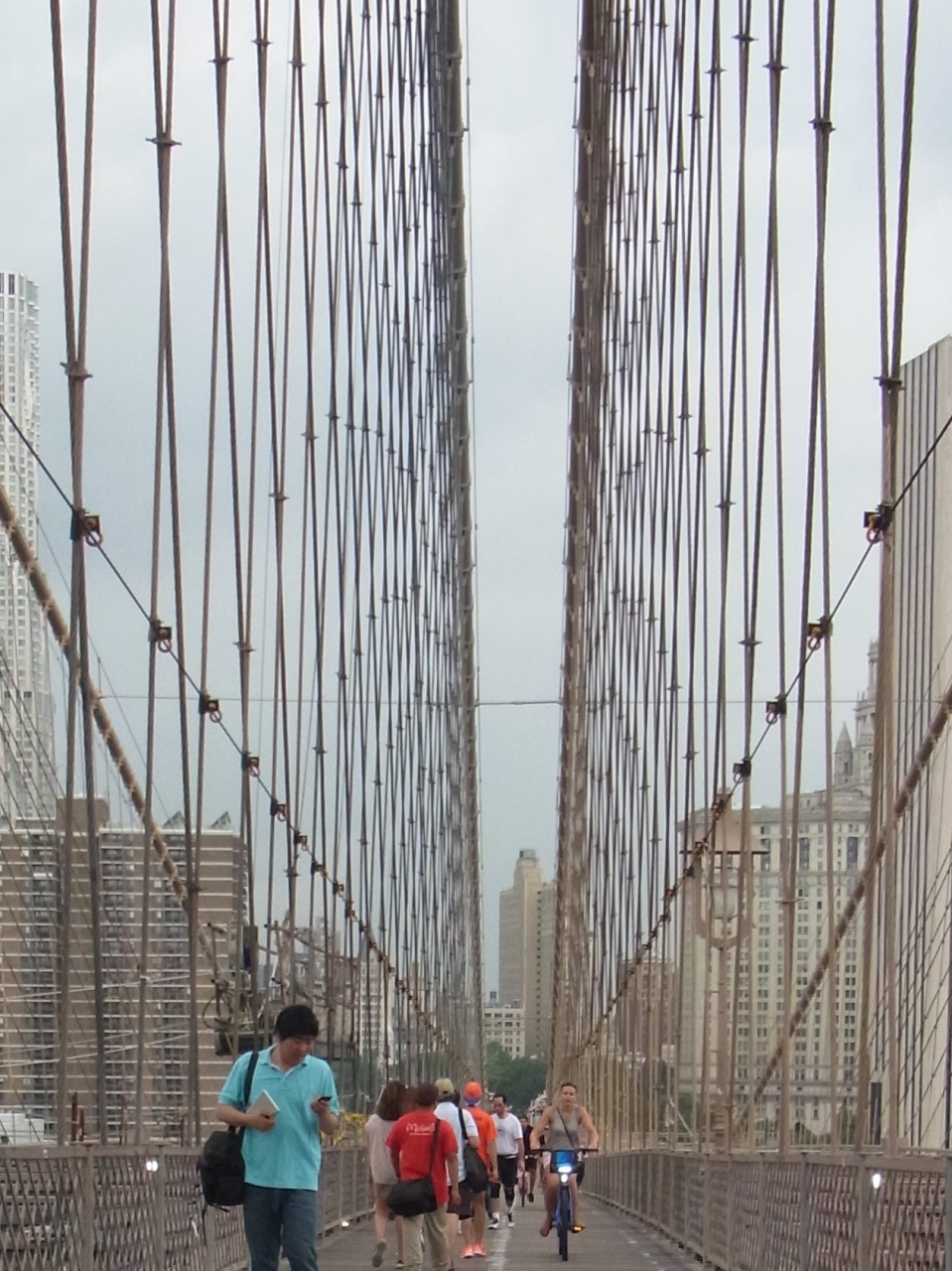 マンハッタン側から歩いて、途中のベンチなどがあるエリアまで行って、写真を撮って戻って来ました。歴史的建造物の上を自分が今歩いているというのは、とても気分がいいものです。自転車がすごいスピードで通ったりするので、気をつけて下さい。