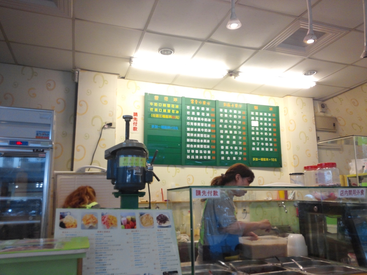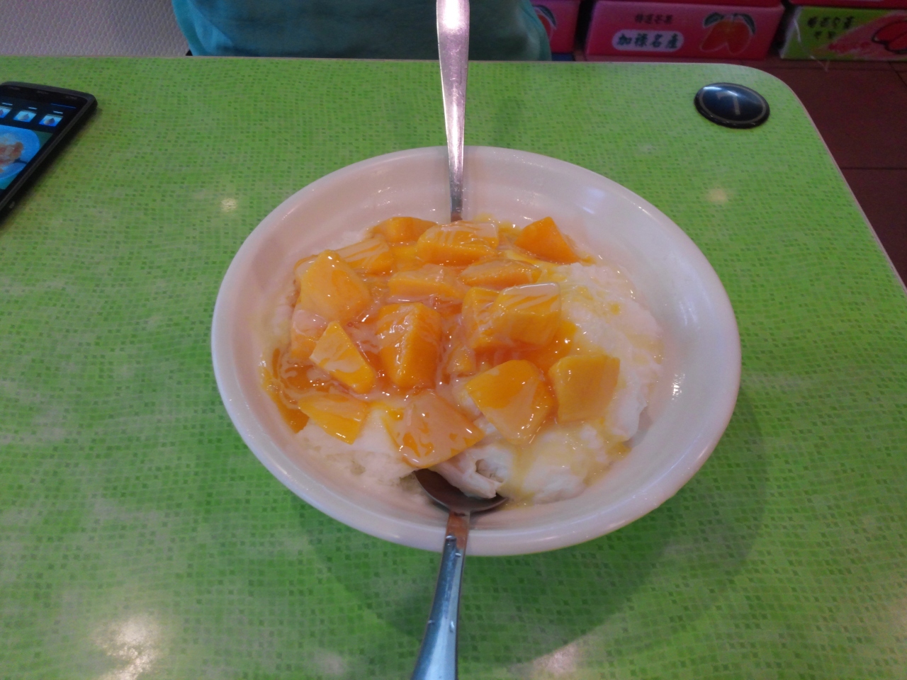 初トライ。食べきれるかな?と2人で1つのマンゴー雪花冰を注文。最低消費額とかいわないし、おじさん感じ良い。100元でした。
