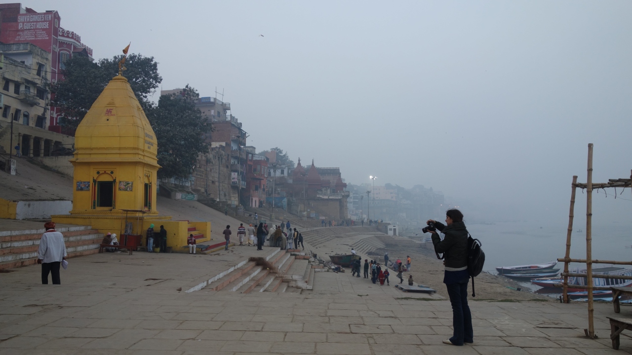 非常に判りやすい、鮮やかな黄色い祠の有るガートです。このガートも、目印には最適です。鮮やかな黄色は、バラナシのガートの中でも珍しい色なので、非常にフォトジェニックです。沢山のツーリストが、撮影に夢中でした。