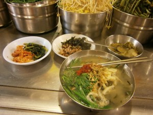 南大門市場のカルグクスを食べました。カルグクス通りは建物の中にあって、わかりずらいです。有名店の巨済食堂でカルグクスを注文すると、アジュマが粉をこねて麺を打ってくれます。麺もスープもおいしく、あっというまに平らげました。また食べたいです!