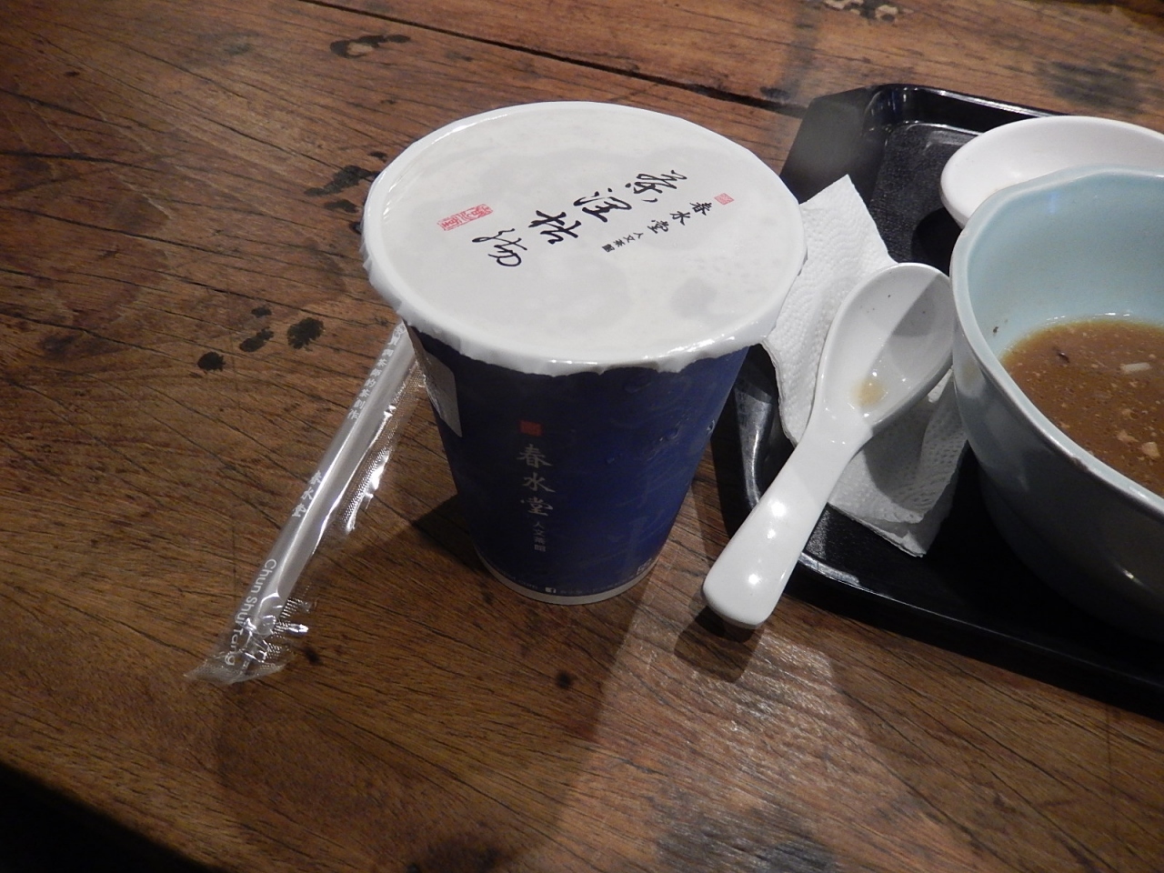 度小月で担仔麺と安平蝦捲(安平えびロール)の定食を食べながら、同フロアにあった春水堂をタピオカドリンクを買って飲みました。初めての食感が楽しかったです。