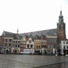 町の真ん中にある広い広場です。駅から歩いて行けます。市庁舎が中央にあり、計量所が脇にあります。チーズ市やお祭りのときは賑やかなのだと思いますが、そのほかの時期にはがらんとしているのかもしれません。周囲のレストランがテラス席を設けたりもしています。
