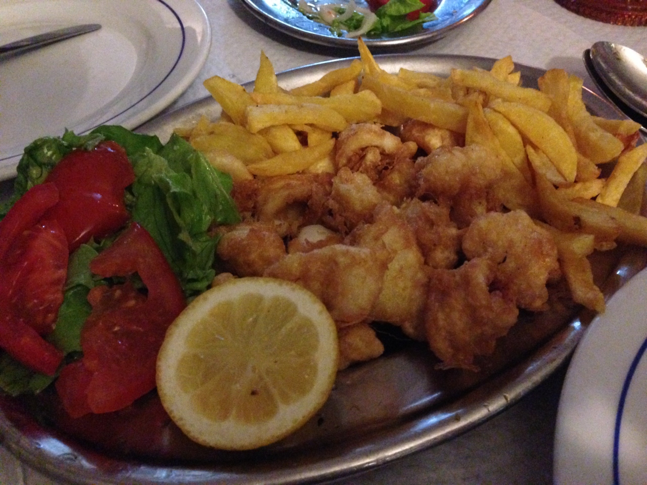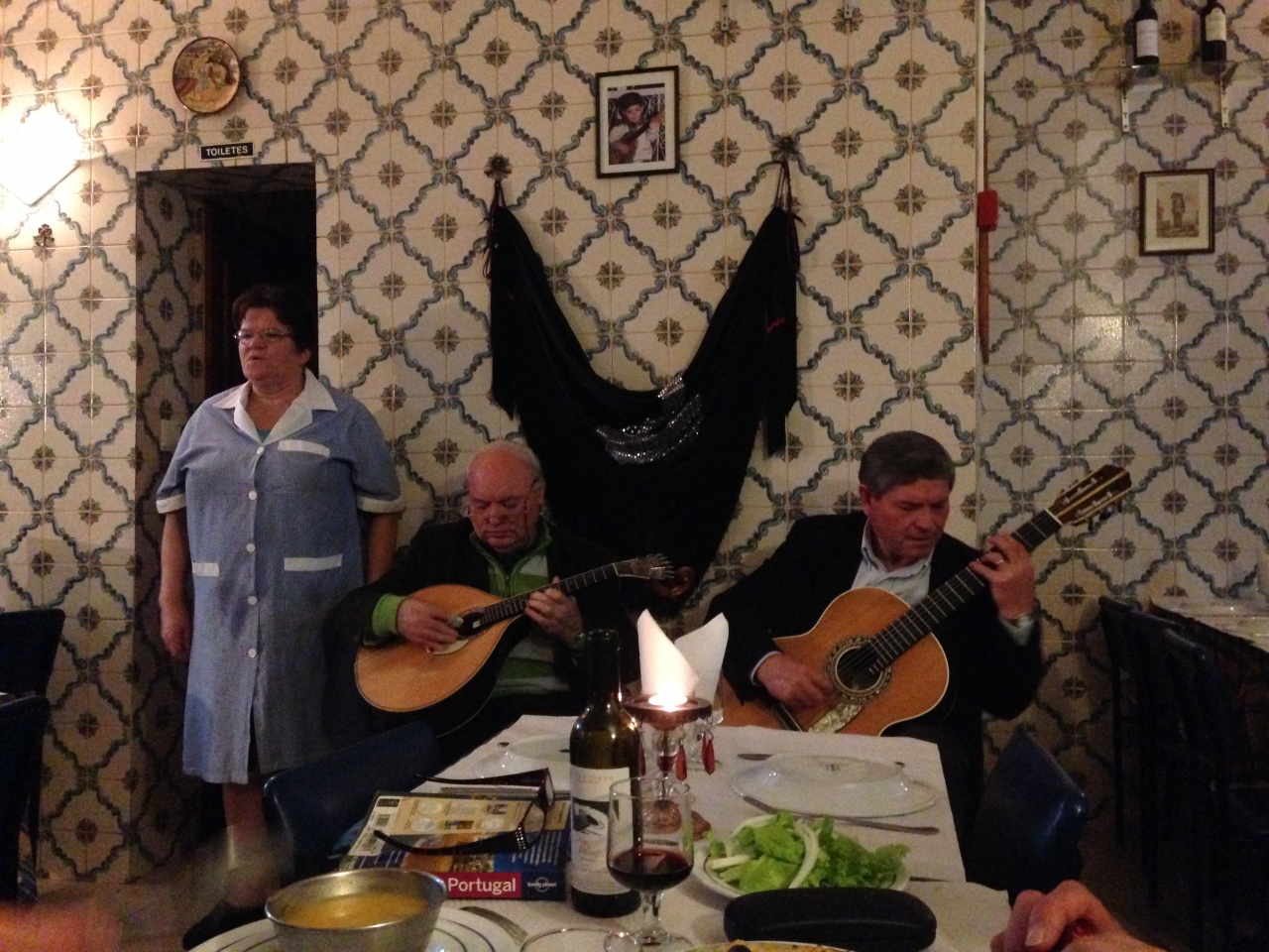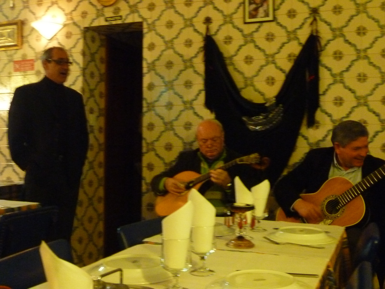 ポルトガルに来たらファドを聞かなくては!と思っても実は開演曜日が限定されていたり、チャージが高かったり予約が必要だったり開演時間が遅かったりと意外に融通がきかないものです。こちらはネット検索でヒットし、チャージ無料で毎晩ファドを開演とのこと。念のため夕方街歩きの途中に下見がてら予約を入れておきました。21時頃には満席になっていました。最初は歌手っぽい男性が歌っているのですがほどなく厨房から料理担当の女性が出てきて歌い始め店内大盛り上がり。2曲程歌ってはまた厨房に戻り調理したかと思うとまた歌うのです。ファド自体が初体験だったのでレベルも分かりませんが歌も伴奏もいたってマトモでした。料理人が歌っているのか歌手が料理もするのか謎ですが、料理も良心的価格だしボリュームもそこそこあり“とりあえず派”なら全く問題なく楽しめます。