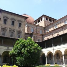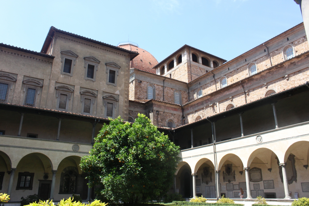 フィレンツェカードは使えませんでした。教会内は撮影禁止でした。教会内はシンプルな造りでした。中庭がありました。本当はミケランジェロが設計した図書館を見たかったのですが、行ったときは公開しておらず、非常に残念でした。