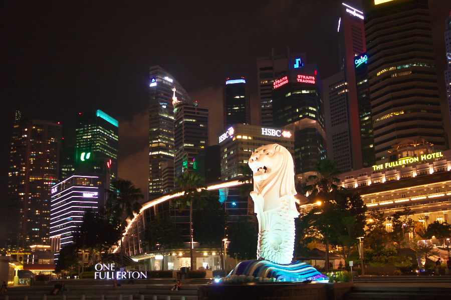 場所はフラートンホテルの前にありとてもわかりやすいです。夜12時頃行ったらマーライオンから水が出ていなくてがっかりでした。ここからは対岸のマリーナベイサンズの夜景がきれいに見えます。金融街の夜景も綺麗ですが、早めの時間に行った方が良いですね。