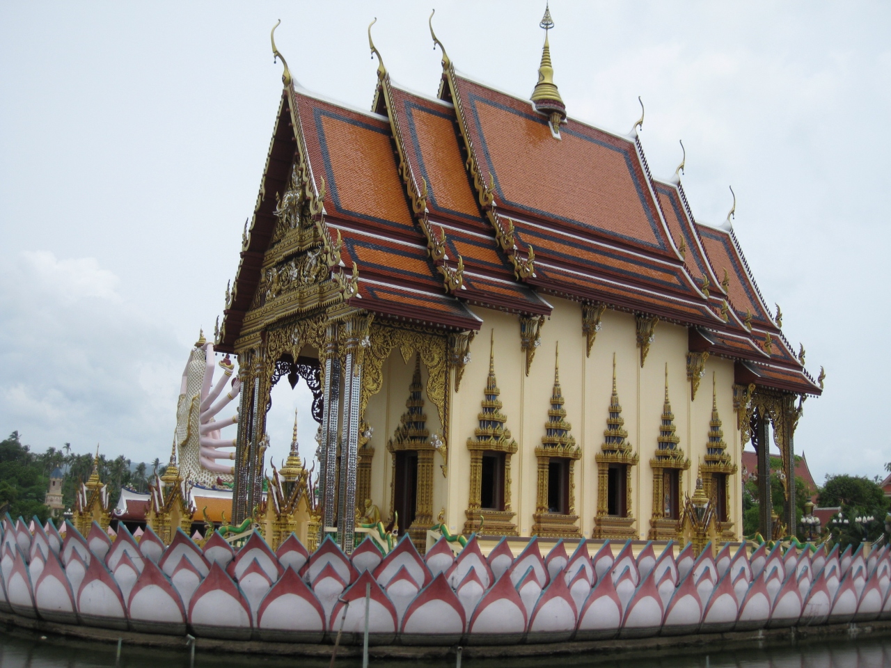 まさにタイの典型的なお寺です。大きな仏像、きらびやかな建物が湖に映えてきれいですよ