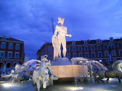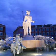 マセナ広場から海に進んだ場所にあって、常に人であふれています。実際、私も友人との待ち合わせに何度も利用しました。アルベール1世の像のまわりが噴水になっていて、夜はライトアップされていてとても綺麗です。