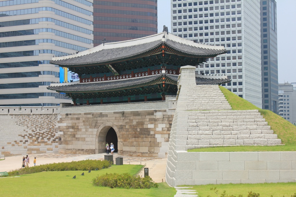 ソウル駅からゆっくり歩いて10~15分くらいで南大門に着きます。高層ビルの真ん中にポツンと門があります。警備員が数人いるだけで、入場料などもありません。龍の絵が綺麗に描かれていました。すぐ近くには南大門市場もあります。