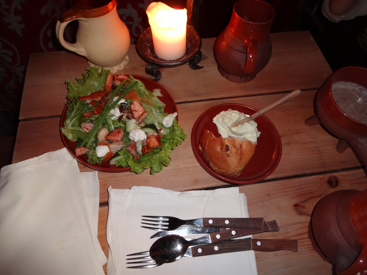 場所は旧市街のほぼ真ん中と言うロケーションです。中世を意識した店内の作りや装飾、置物そして店員の衣装など全てにこっています。日本語のメニューがありますが、一部ピックアップした物で特に飲み物などは好みでしょうが、イングリッシュメニューを見たほうが良いと思います。(日本人だと直ぐに日本語メニューしか持ってこないかも)個人的に話の種に行くというレベルのお店とおもいます。
