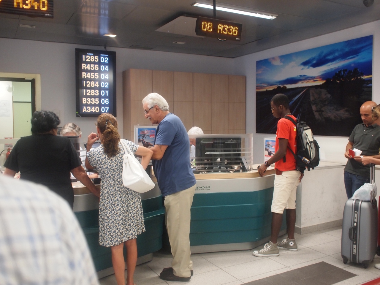 ナポリ駅は設備は充実しているのですが、総合案内所を利用したい場合、行列が何種類もあって、番号札も2種類?あるようでした。私達は番号札を取ったものの、表示された番号の窓口に行くのが遅れ、順番を飛ばされそうになり、ちょっと嫌な思いをしました。注意して下さい。
