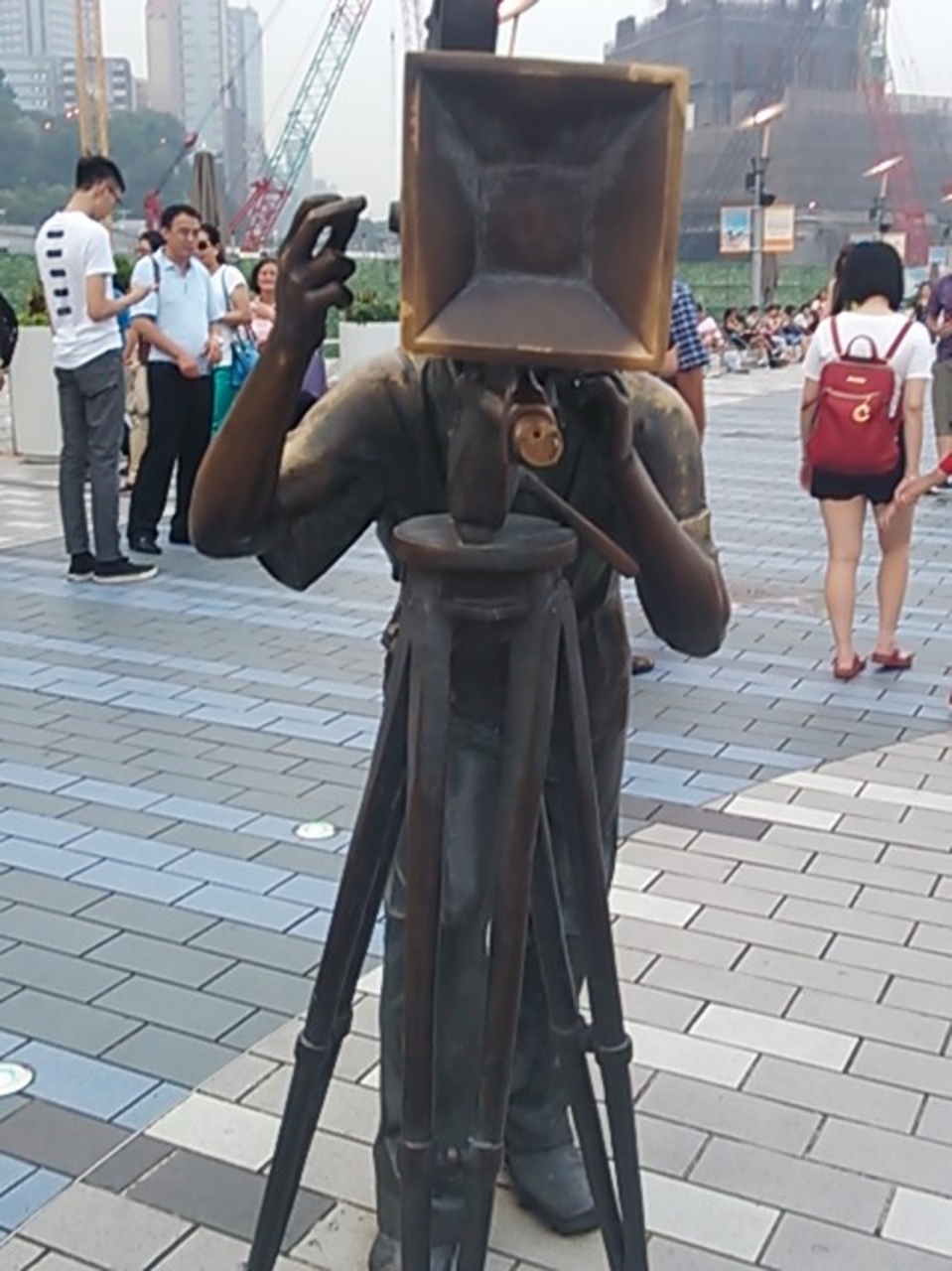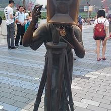 距離的にかなり歩く。ブルース・リーの銅像にたどり着くまでの間、色々な銅像に出会えまた、歩道なは有名人の手形がある。