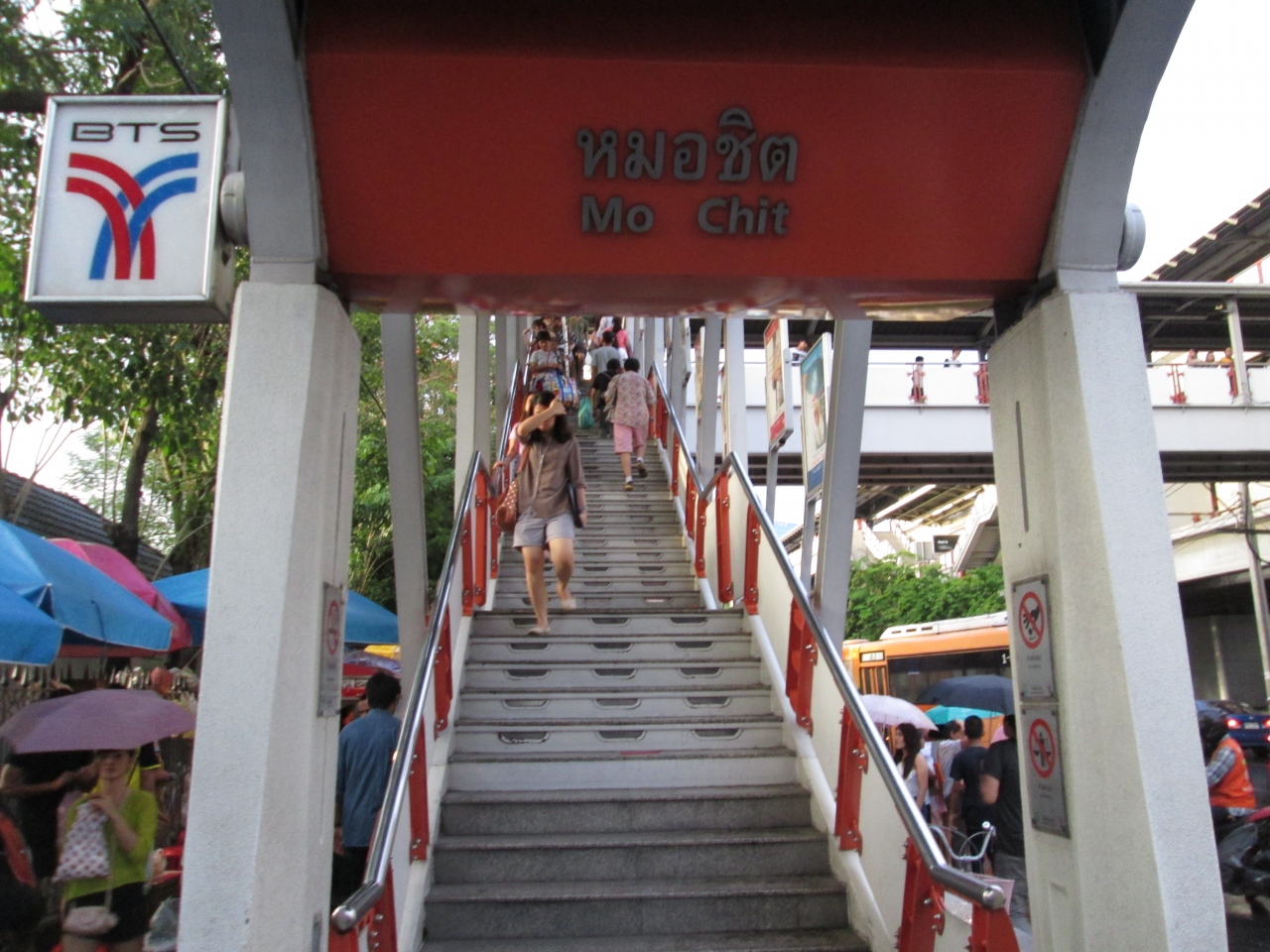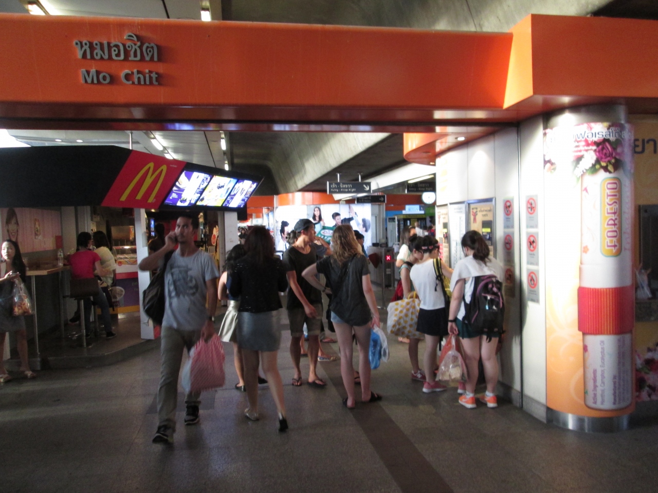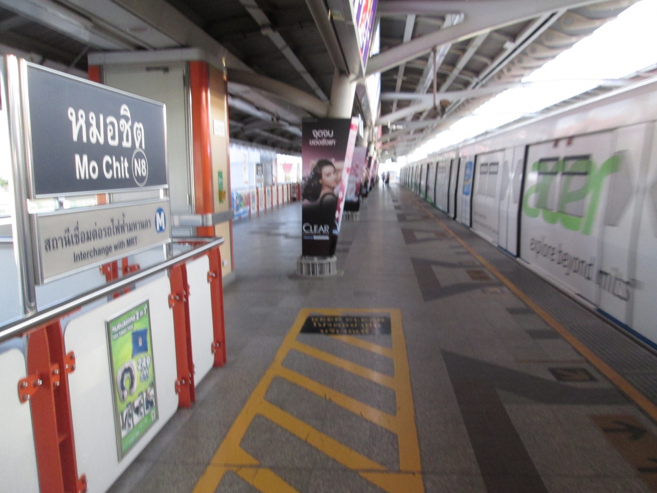 土曜日のモーチット駅はチャトゥチャック・ウィークエンド・マーケットに訪問する観光客、地元の客で駅構内は満員ですが、6月のバンコクは雨季で午後の間に雨が降り続いた日があったので、駅構内と始発となるBTS車内は空いていました。
