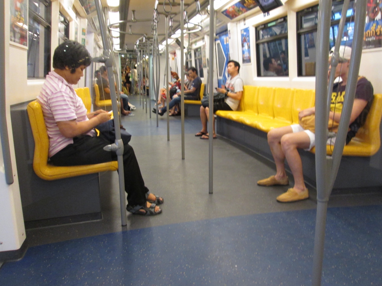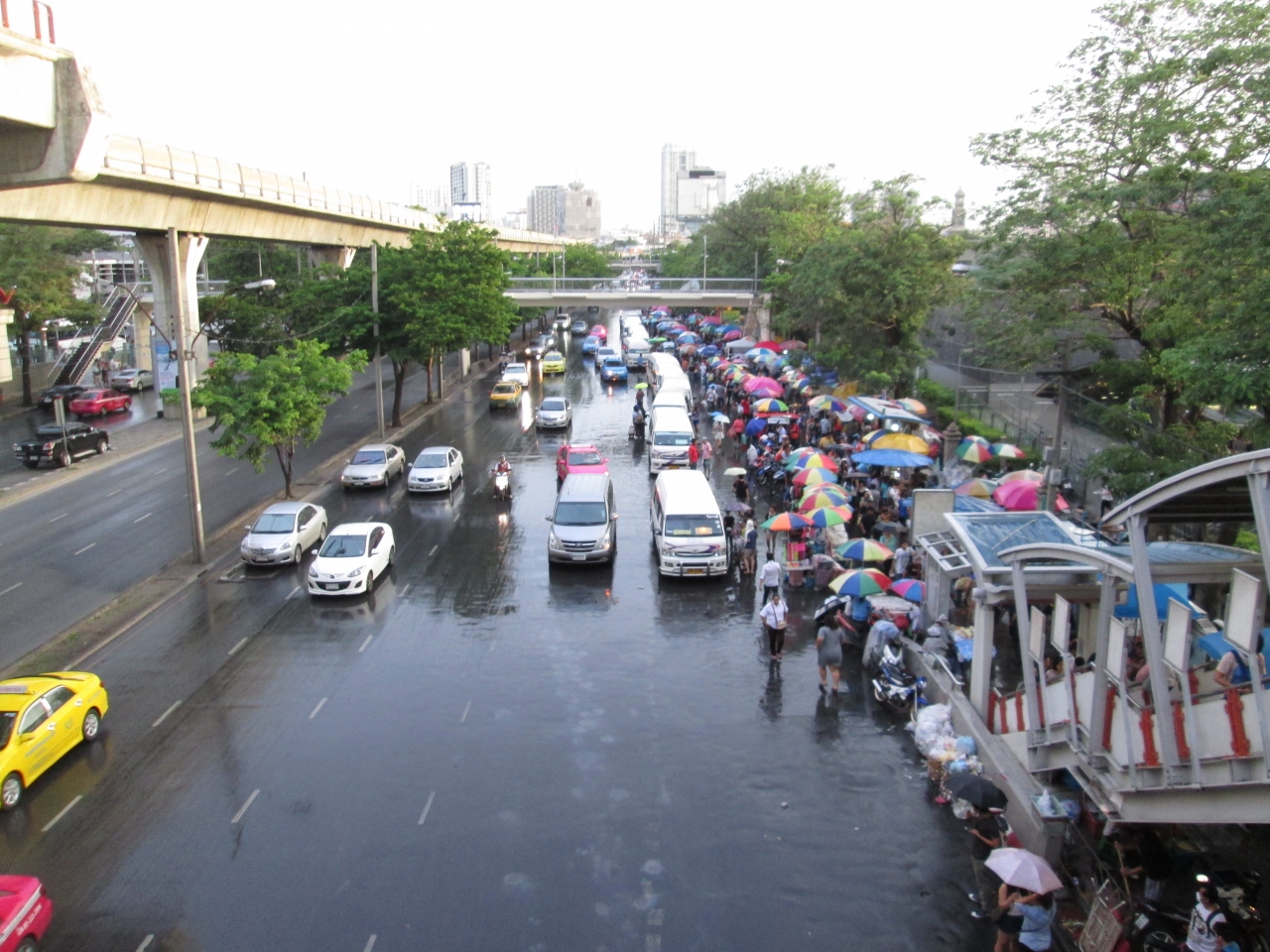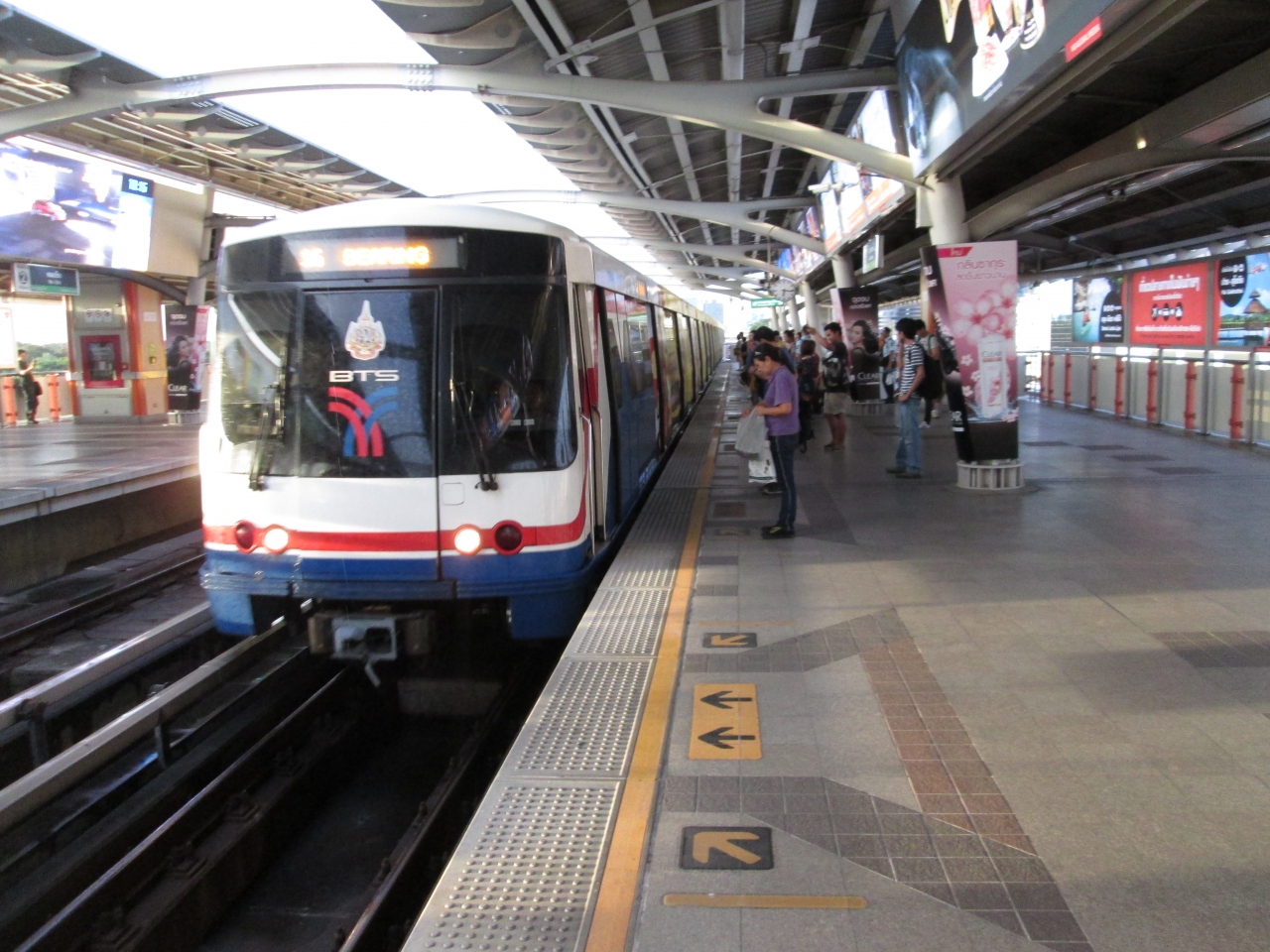 土曜日のモーチット駅はチャトゥチャック・ウィークエンド・マーケットに訪問する観光客、地元の客で駅構内は満員ですが、6月のバンコクは雨季で午後の間に雨が降り続いた日があったので、駅構内と始発となるBTS車内は空いていました。