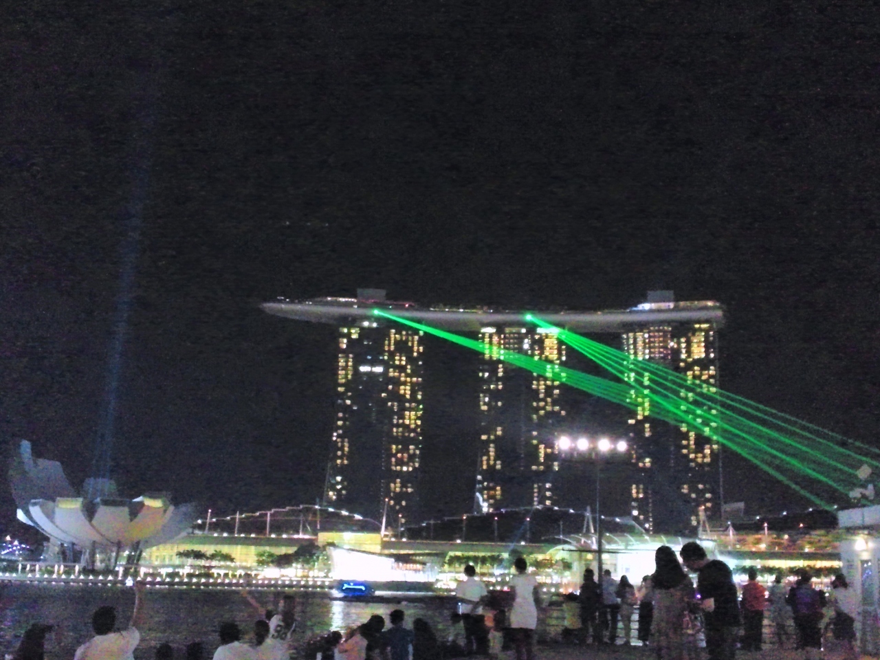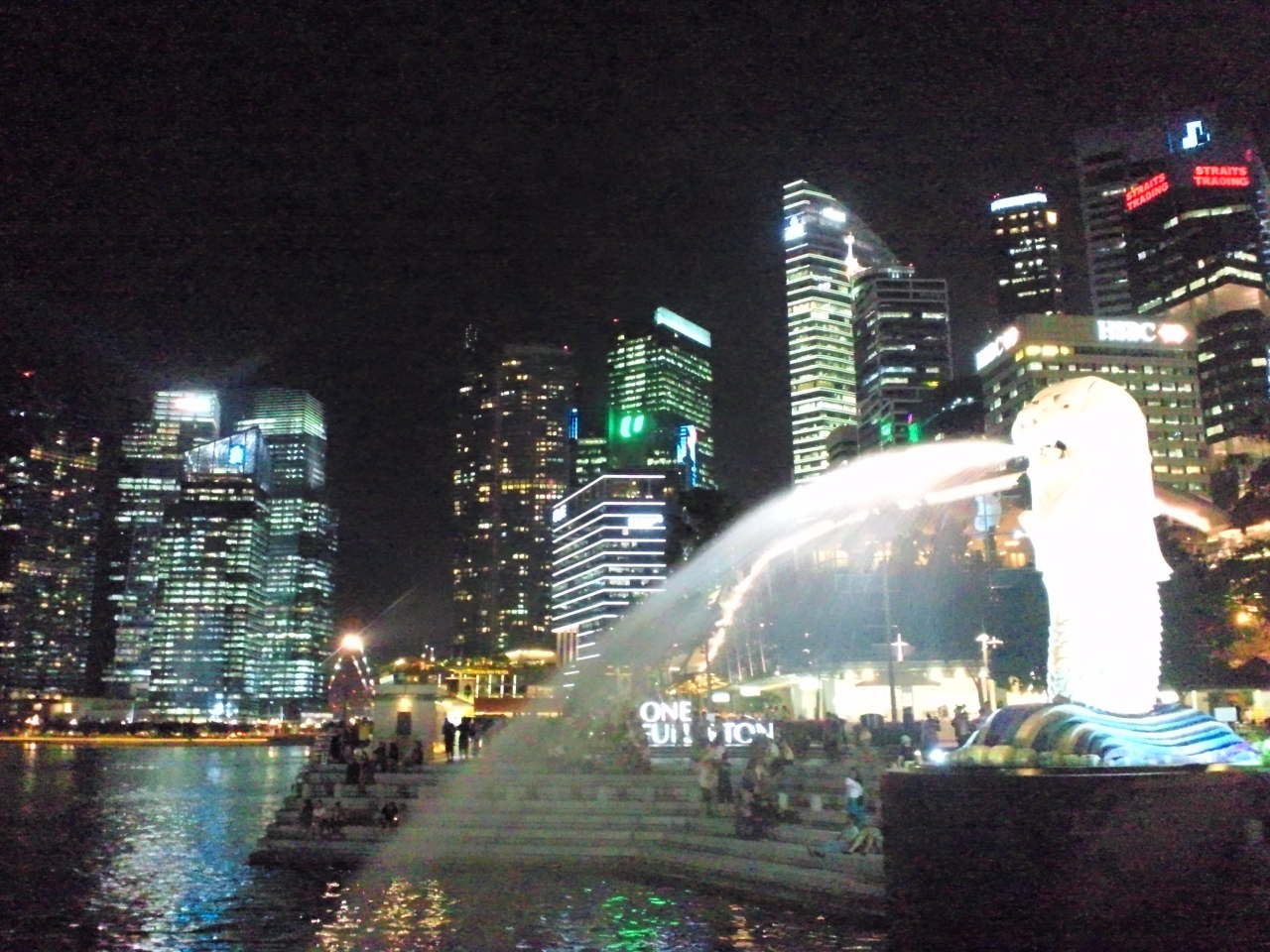 マーライオン越しにはマリーナベイサンズ、反対は高層ビル群です。