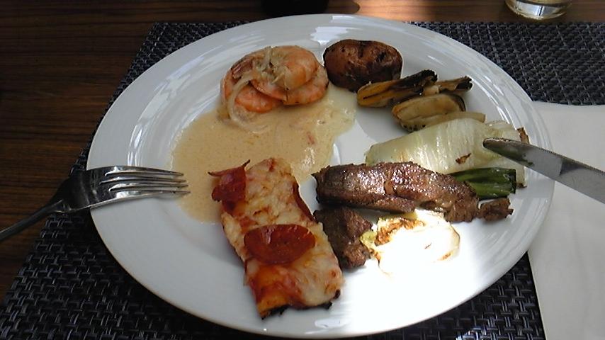 ヒルトン・グアム・リゾート&スパ ホテルにある。平日のランチバイキングを利用しました。料理はどれも日本人に合った味付けとなっていて、特にエビと牛肉は美味しかった。平日でしたのでお客さんも多くなく、ゆっくりと食事が出来ました。