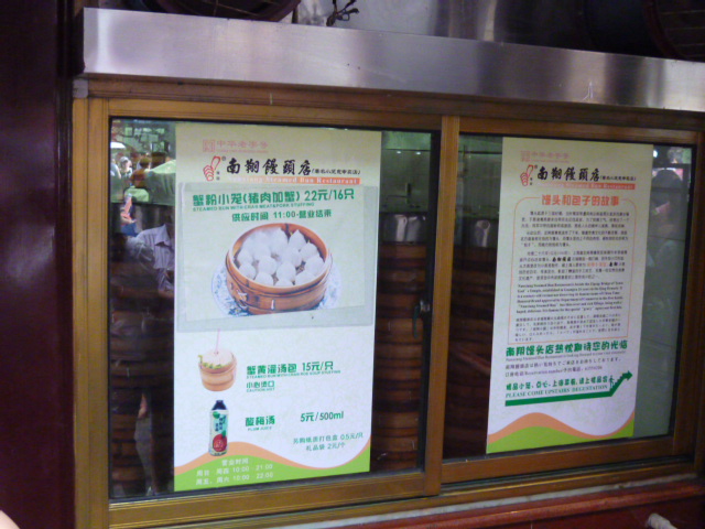 上海名物小龍包の老舗です。豫園商場の一角にあり、常に長蛇の列が出来ていますので相当の覚悟をして並んでください。ジューシーで美味ですが、これだけだと途中で飽きてきます。「外売」の窓口で購入して、近くに腰かけて人ごみの中食べている旅行者も多いです。