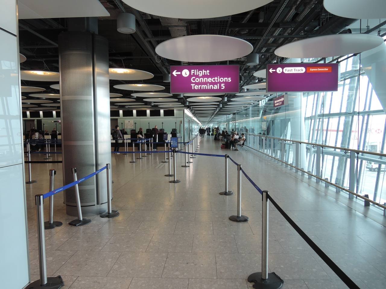 ボーディングチケットにはヒースロー空港の5ターミナルに到着することが
