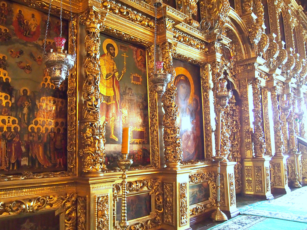 「ウスペンスキー聖堂」と、中央に柱などの支えが無いロシア最大規模の室内空間「聖セルギイの食堂」のイコンは壮観な造りでした。