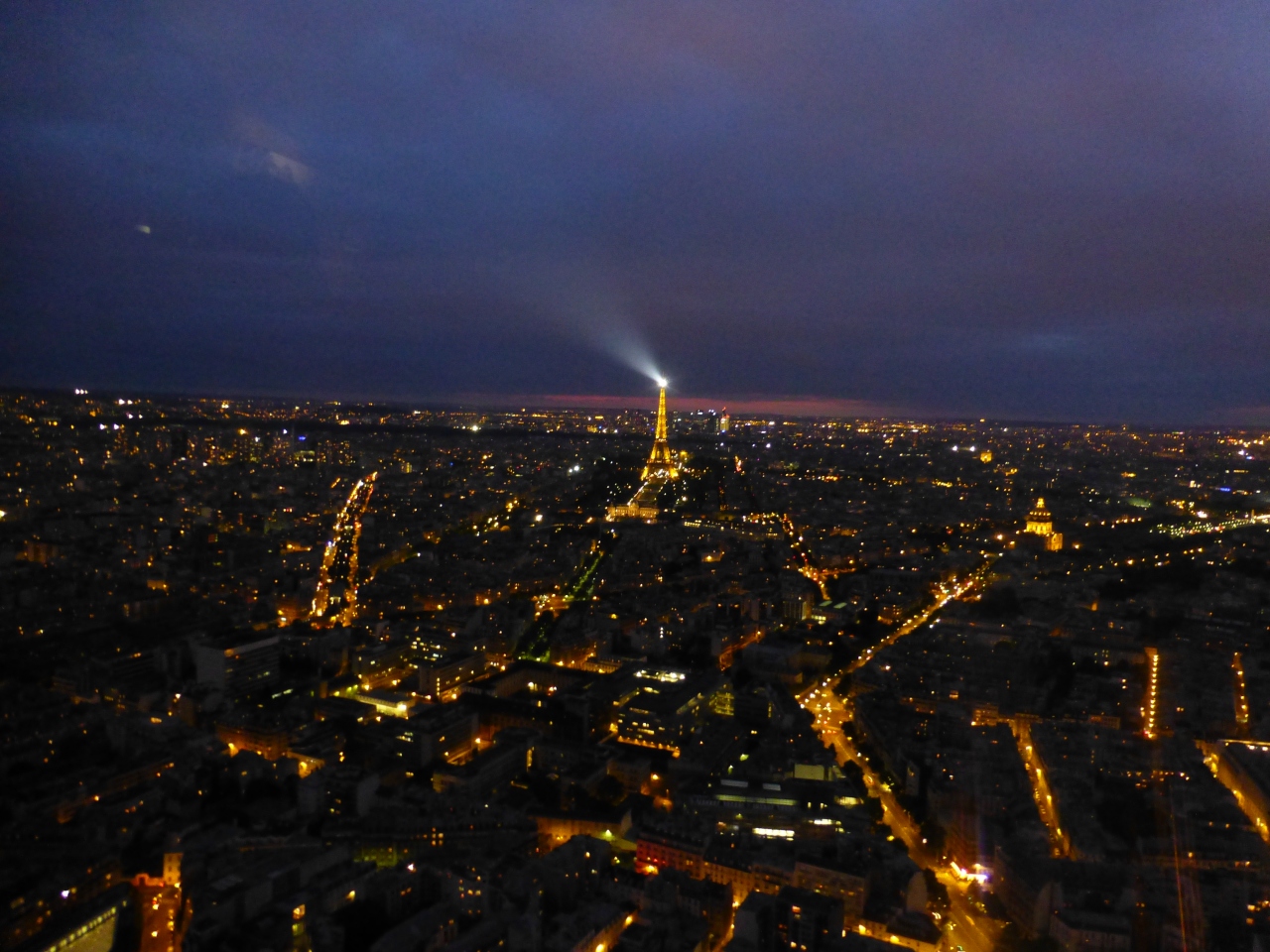 56階が展望台になっています。展望台へのエレベータは長蛇の列に見えましたが、並んでみると30分待ちくらいで登ることができました。エッフェル塔、アンヴァリッド、凱旋門などの観光スポットが一望でき、ここから見る夜景は絶景です。チケットは14.5ユーロとちょっと高めですが、バリ・ビジットを持っていれば30%割引で、10.15ユーロになります。
