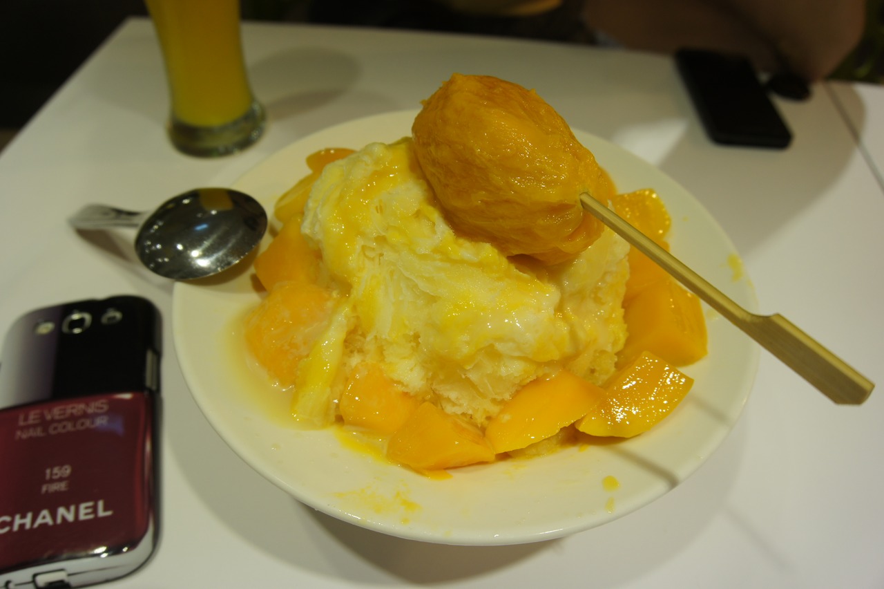 どこにでもある普通のかき氷でしたが、丸ごとひとつのったマンゴーは大きくてこれだけでおなかいっぱいになりそうでした。