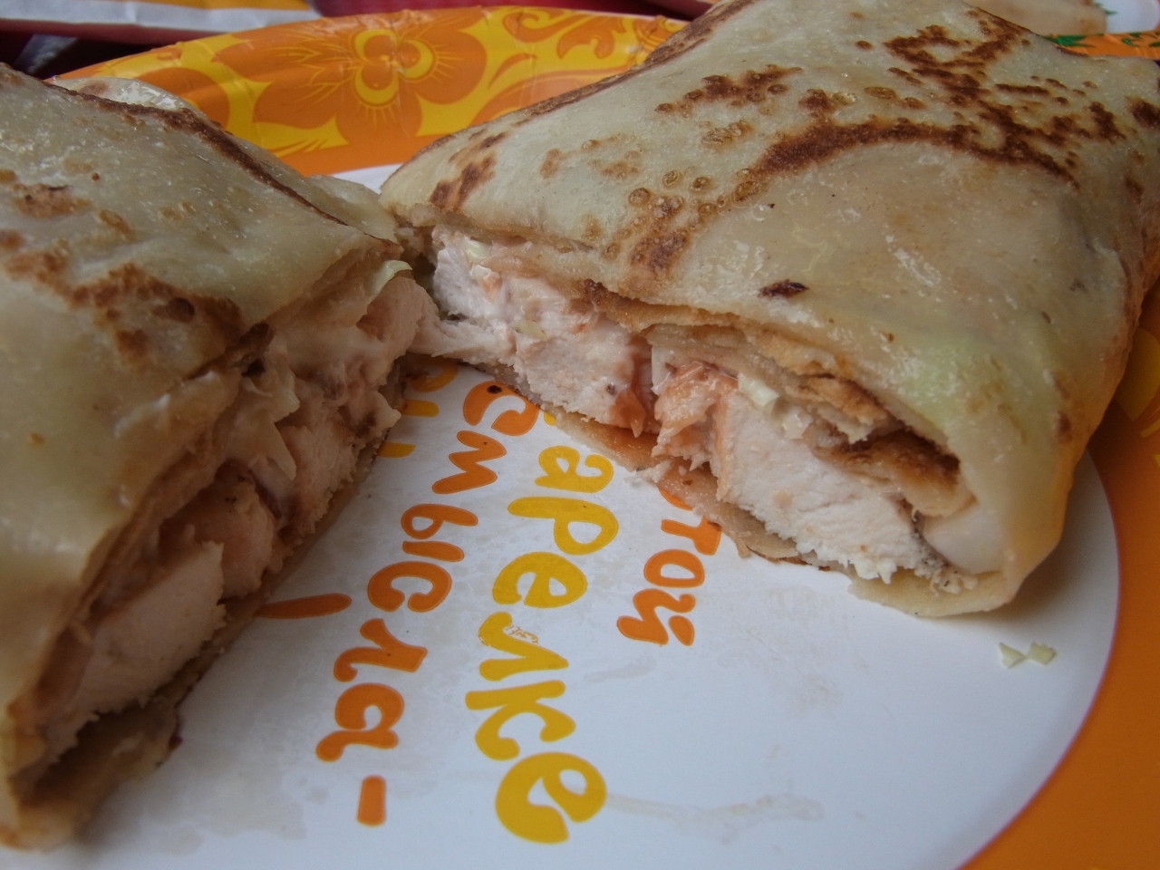 ロシア風クレープのブリヌイ。このチェーン店がモスクワとペテルブルクのメトロ駅の近くに必ずと言っていいほどあります。値段も良心的で、おいしかったです。おかずブリヌイにはチキンが入っていたり、ピザのようなものもあるし、イクラもあります。デザートのようなブリヌイもあります。スープもありました。