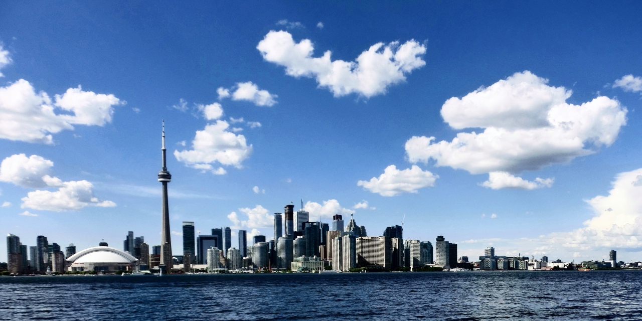 Toront島からオンタリオ湖のごく一部を挟んでながめたトロント市街の様子は絵はがきのようだ。