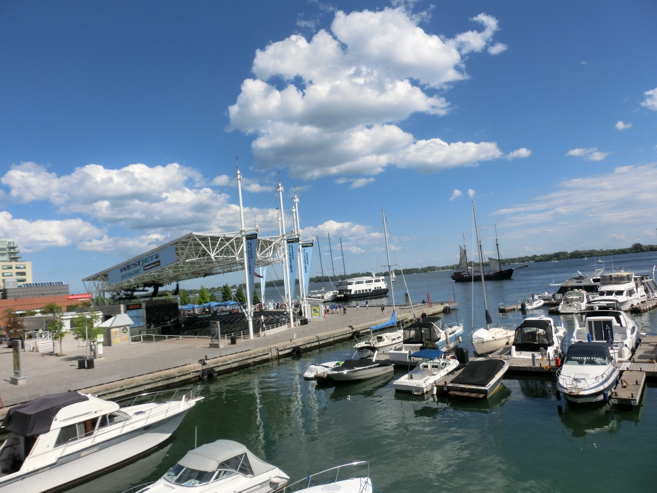 Torontoのハーバーフロントから遊覧船に乗って港巡りか、Toront島行きのフェリーで、オンタリオ湖の一部を体感できる。