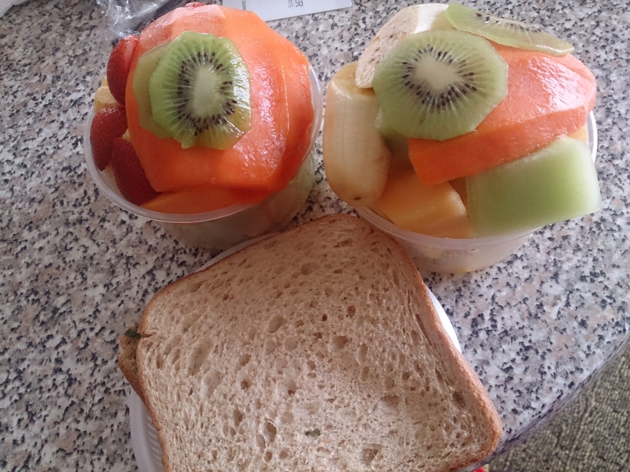 フルーツの盛り合わせとツナのサンドイッチを購入しホテルで食べました。